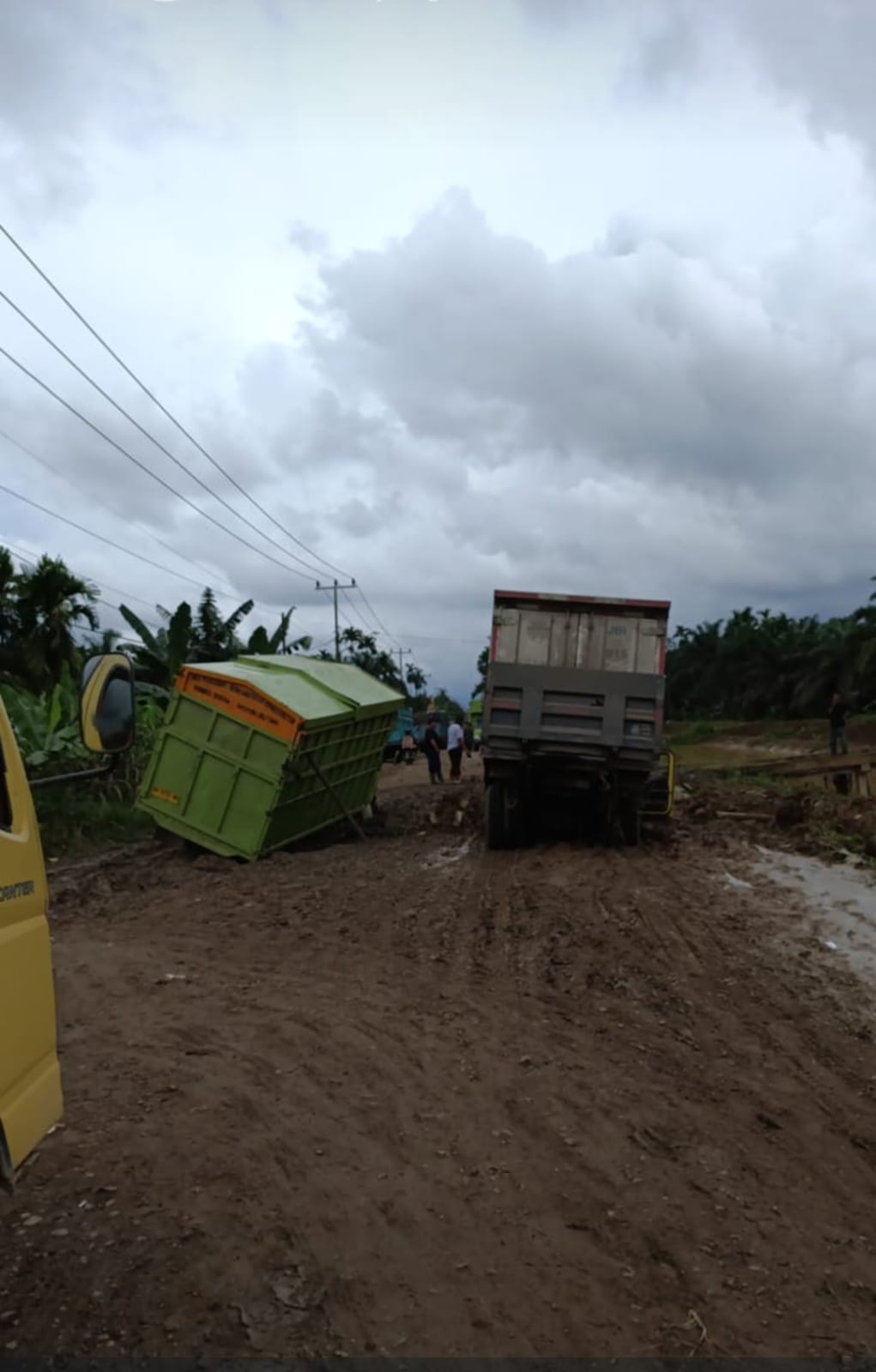 Ada sekitar ratusan meter panjang antrian puluhan mobil angkutan buah kelapa sawit akibat terjebak macet dan ada dua titik yang jalan rusak parah mengingatkan macet yaitu SK 10 Bandar Jaya dan ruas jalan Teluk Serdang, ujar Rian salah satu sopir mobil.