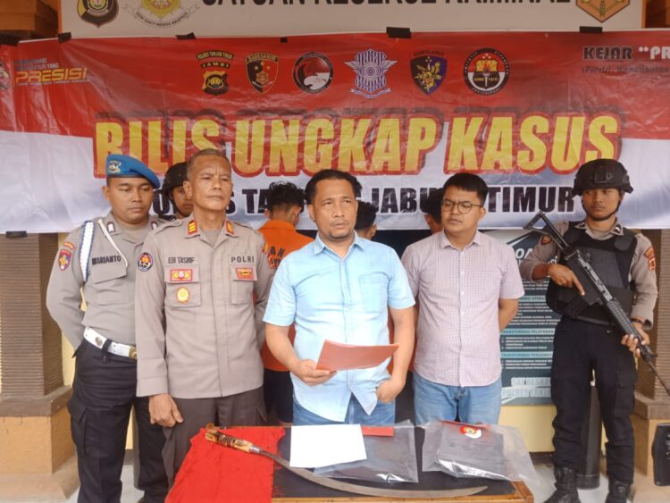 Britanusantara.id, Tanjabtim – Sat Reskrim Polres Tanjung Jabung Timur (Tanjabtim) berhasil menggagalkan aksi tawuran dan mengamankan dua orang remaja yang diduga terlibat akan melakukan aksi tawuran dengan membawa sebilah senjata tajam jenis celurit, pada hari Selasa, (11/02/2025) sekira pukul 22.00 Wib di Taman TK Kelurahan Rano Kecamatan Muara Sabak Barat Kabupaten Tanjung Jabung Timur. Jambi.